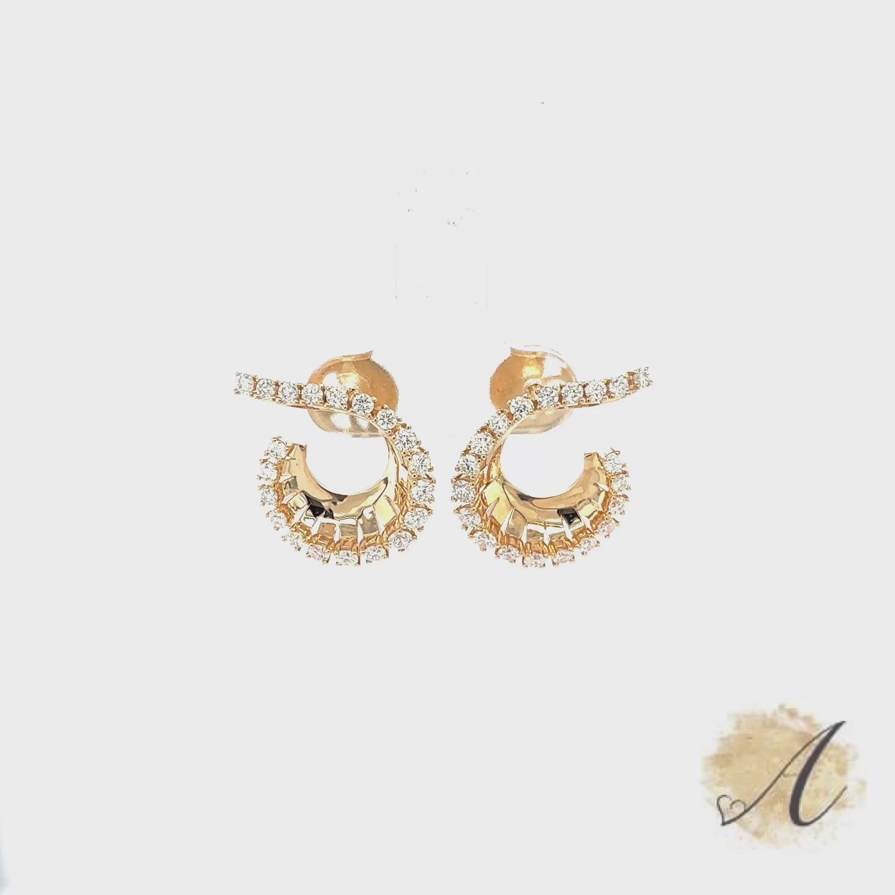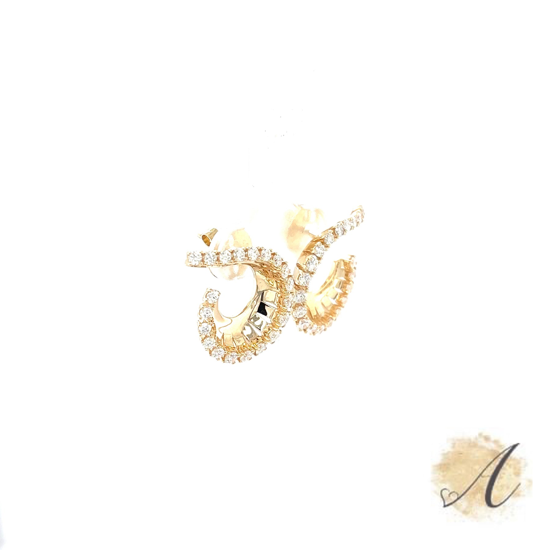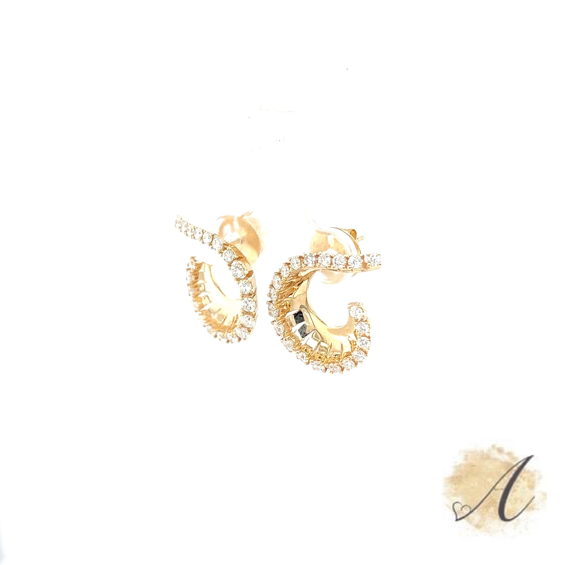 These Curved 14kt Yellow Gold Earrings have Forty Natural Round Brilliant Cut Diamonds Weighing 1.37 Carat. Set in 14kt Yellow Gold.