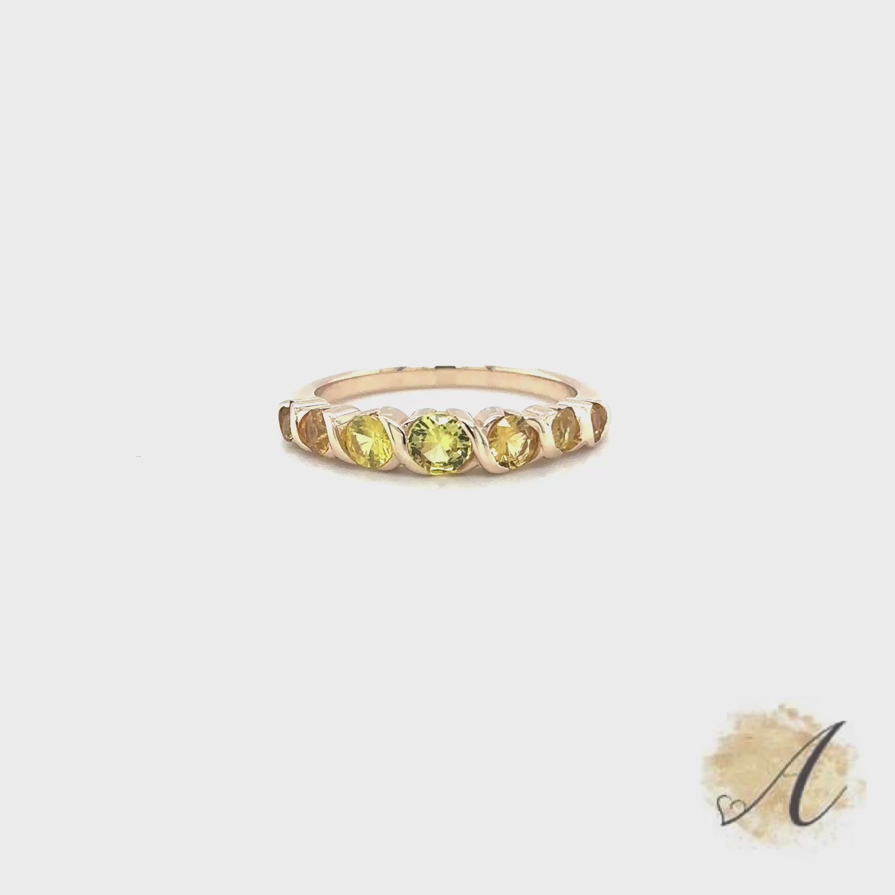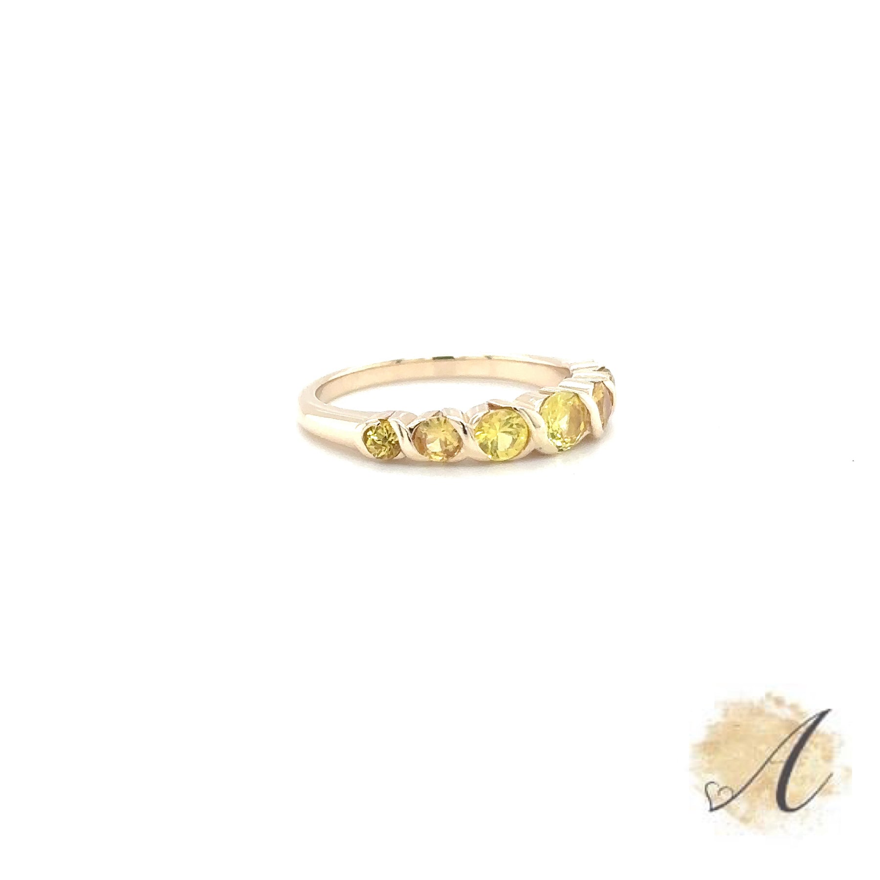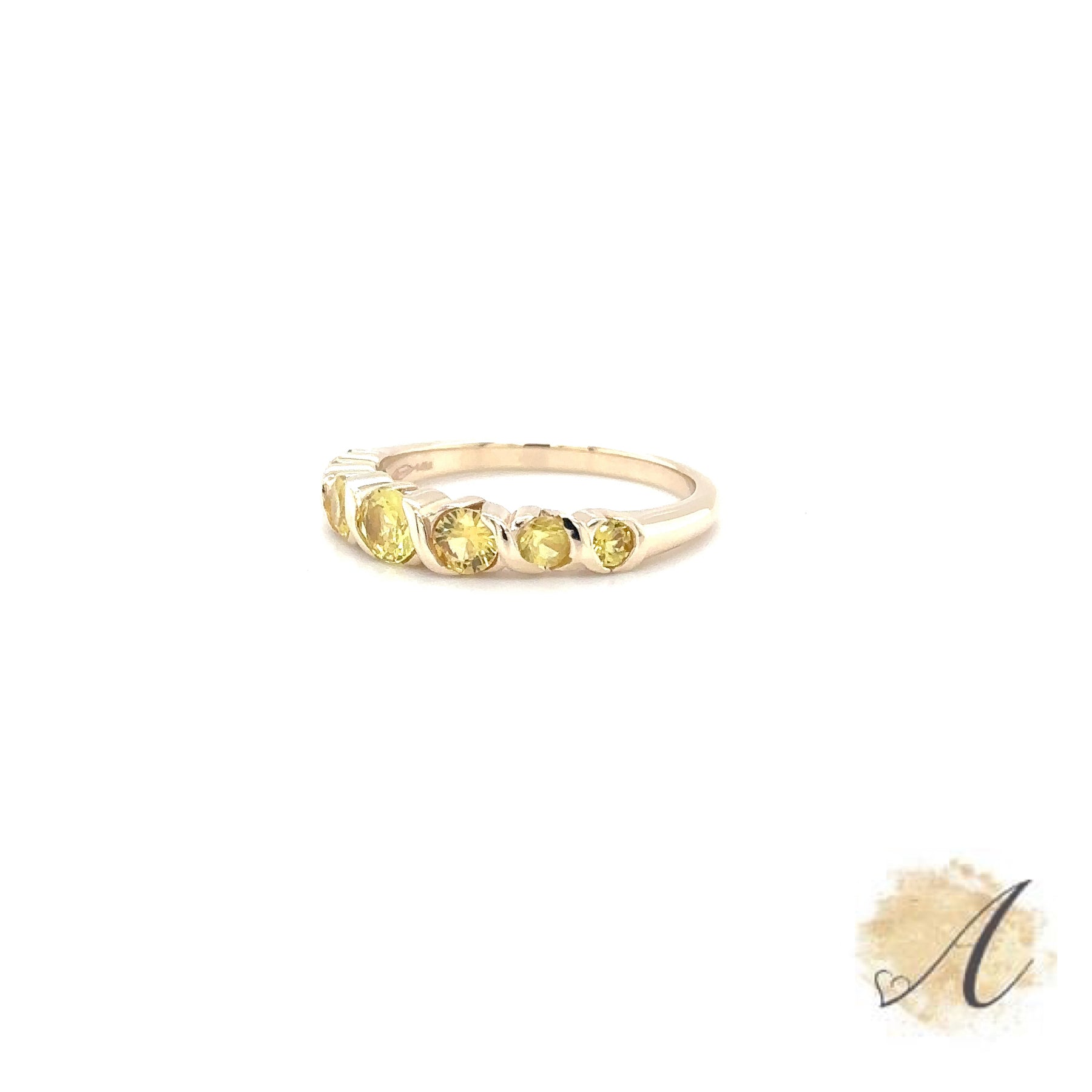 This Genuine Yellow Sapphire Elegant Bar Ring is Perfect for Cocktail Parties and Soirees. Comes with Seven Round Genuine Yellow Sapphires Weighing 1.13 Carat Total Weight. Set in Ornate Bar Style Setting 14kt Yellow Gold. Size 7. (This Ring Can Be Made in Any Size).