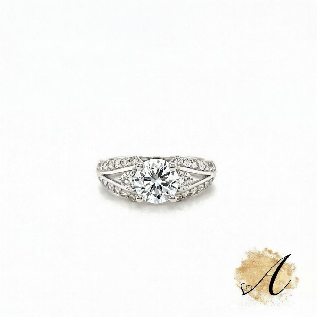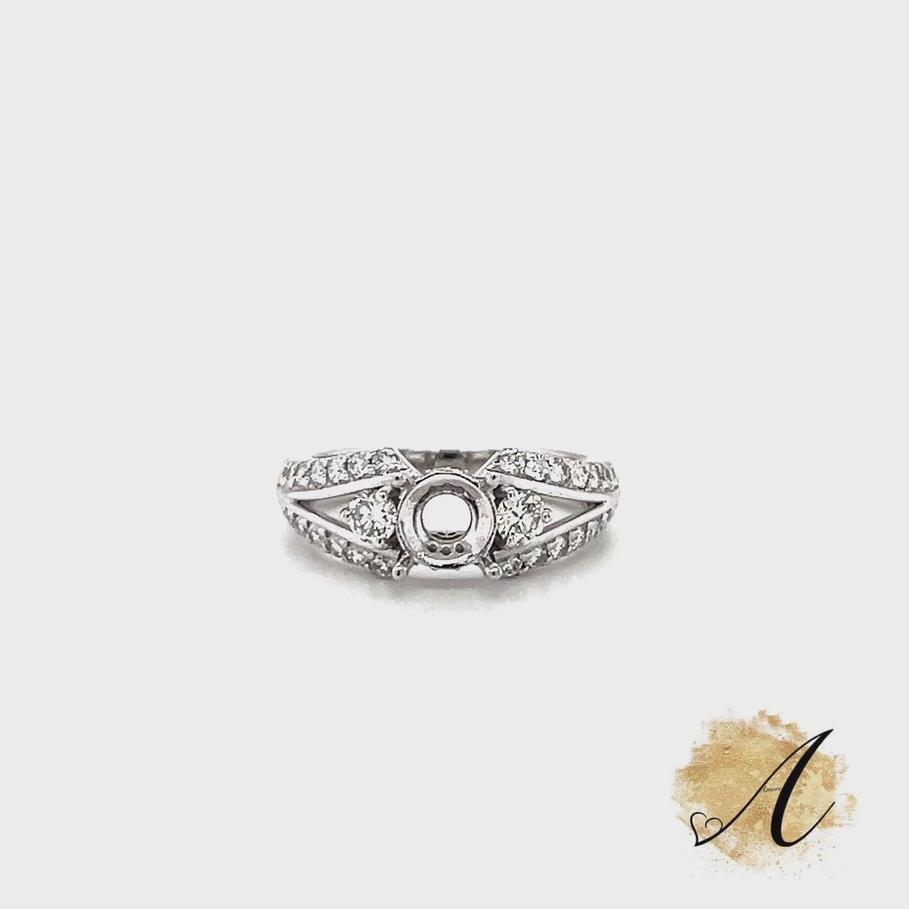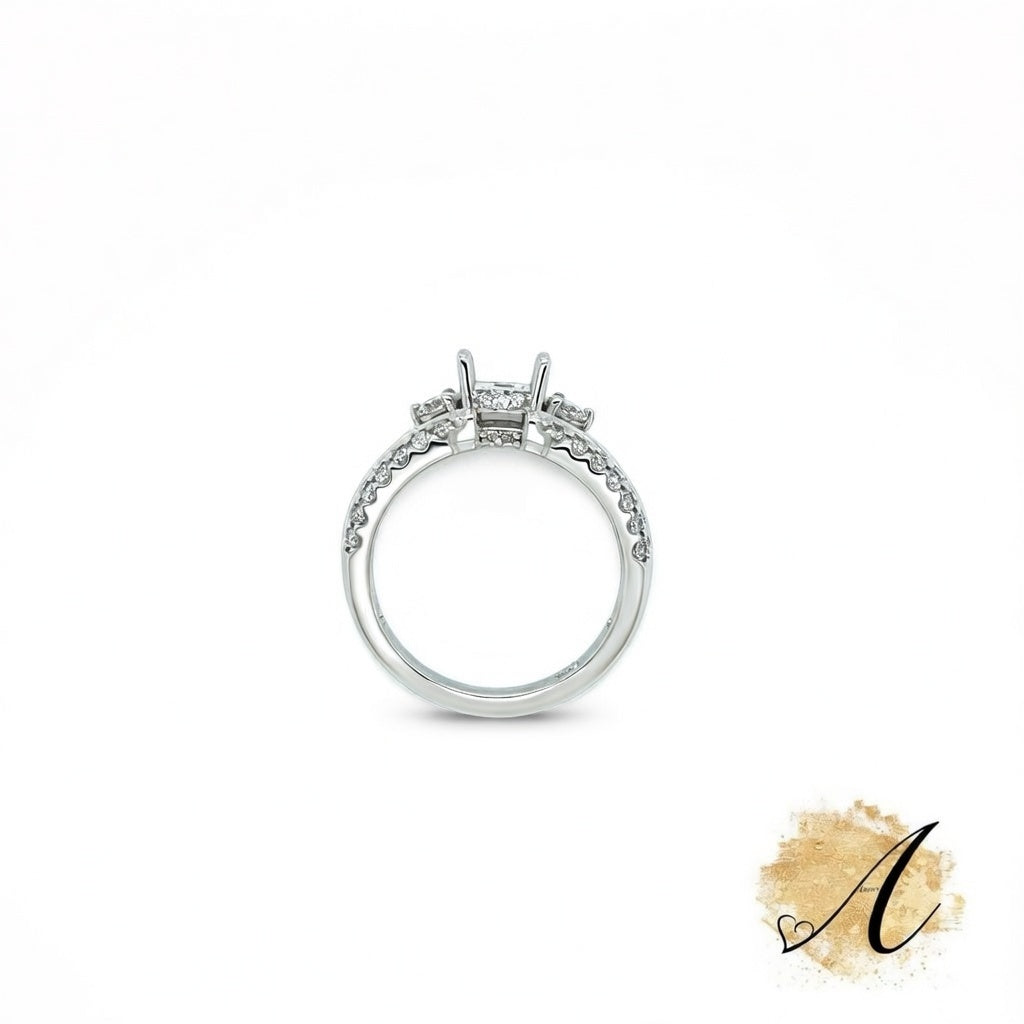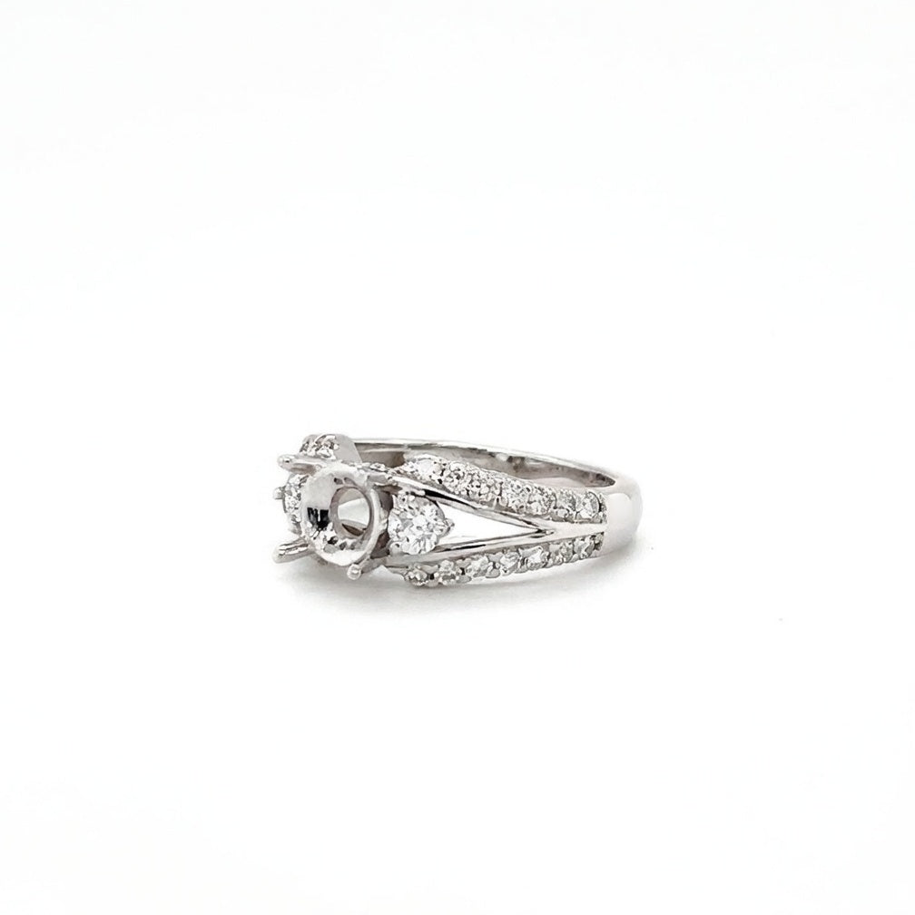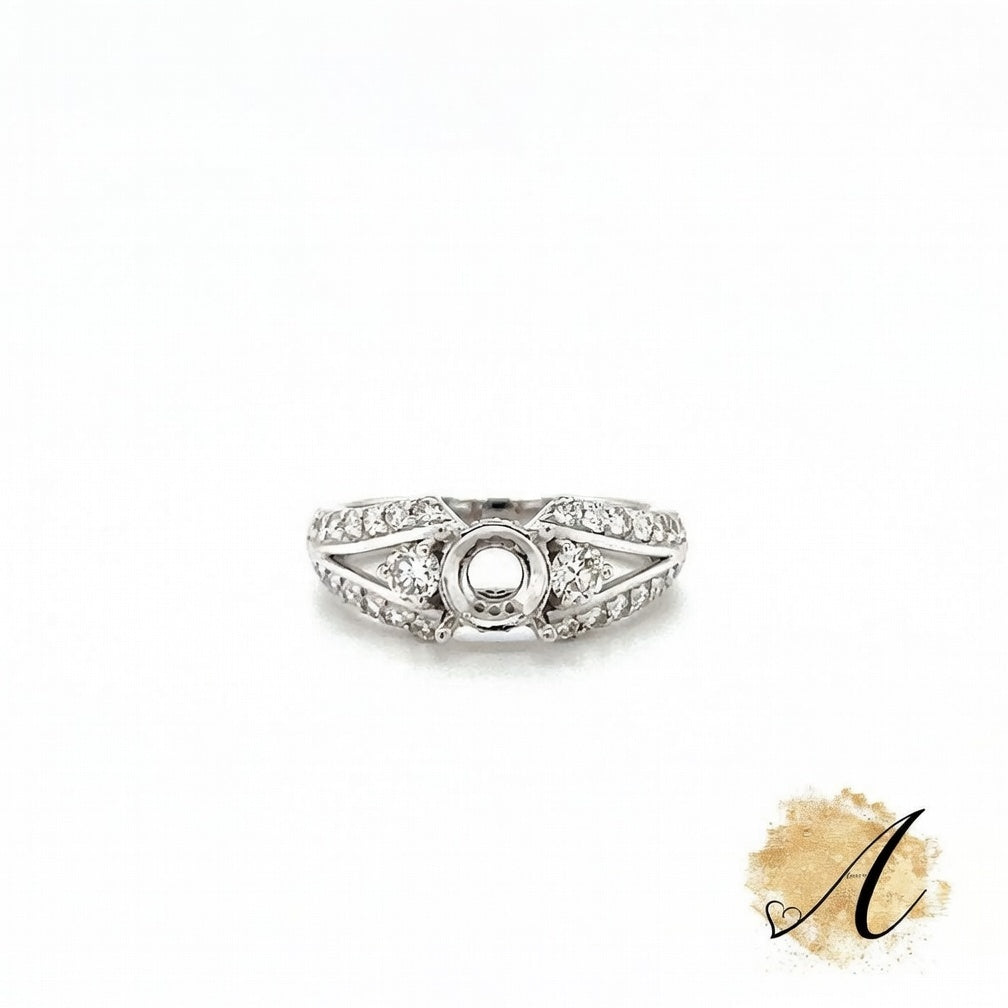 This Luxury Diamond Semi-Mount for Round Center Stone in 14K White Gold Has 0.69cttw of Natural Diamonds (40 Stones) Is a Size 6 But Can Be Sized or Remade in Any Finger Size.