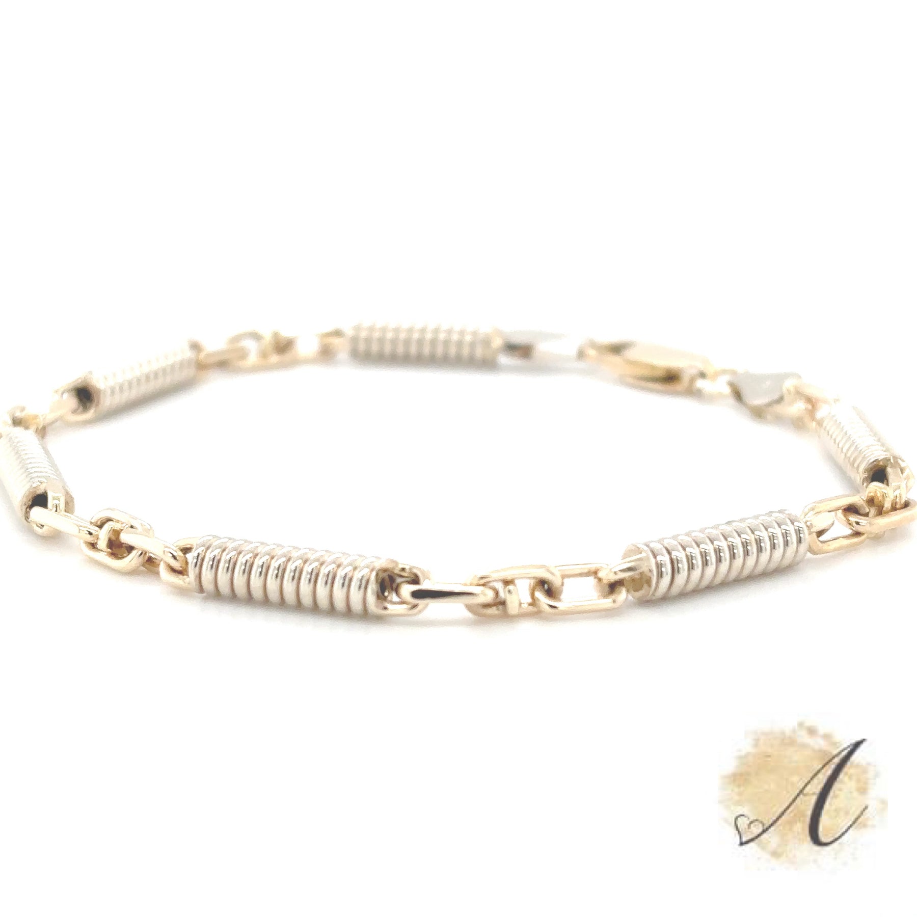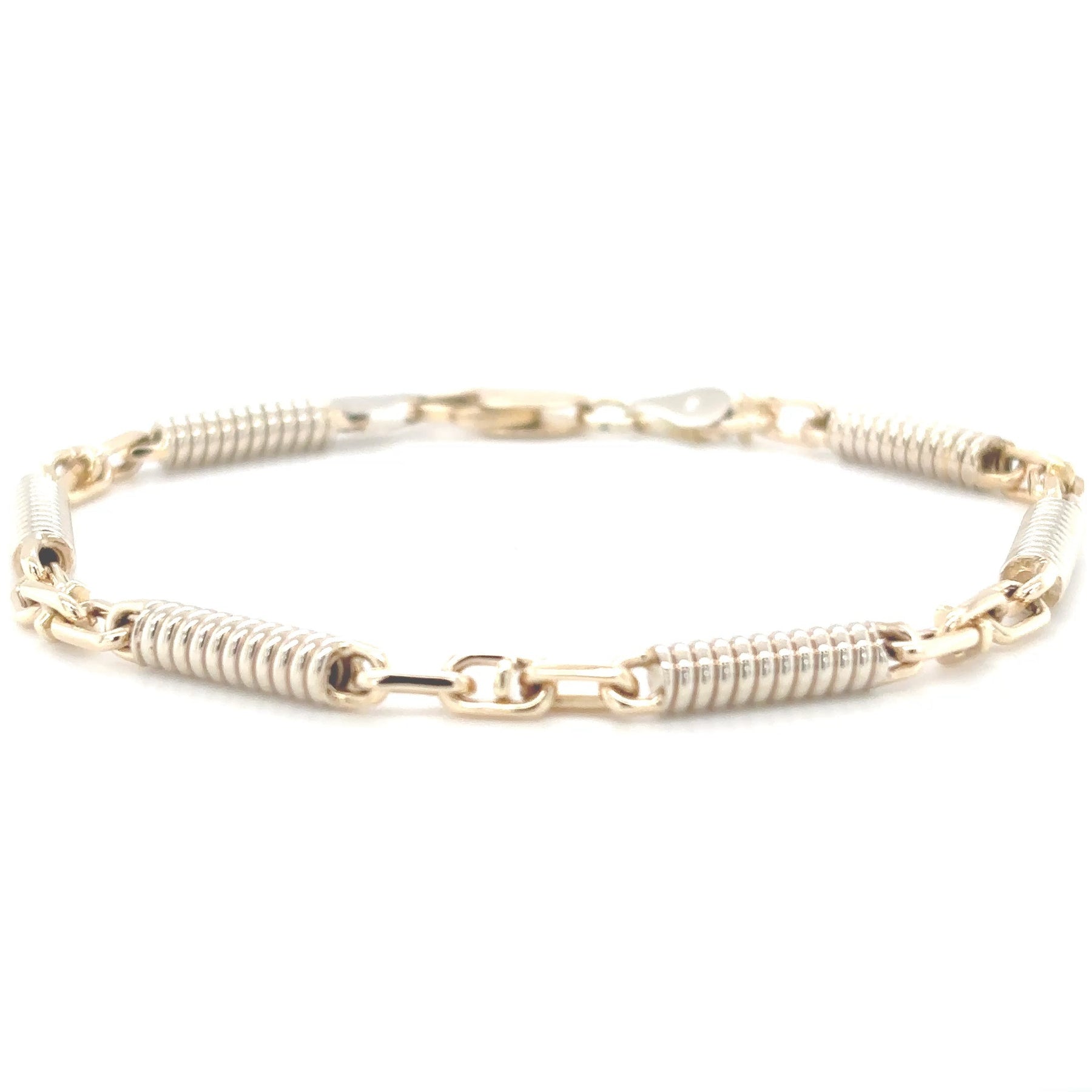 This Spring Chain Yellow Gold Bracelet Weighs 13 Grams and is Sturdy, Yet Stylish. Made with 14kt Yellow Gold.